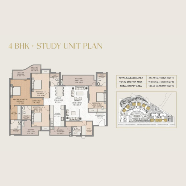 • 4 BHK + Study: 2625 sq. ft.